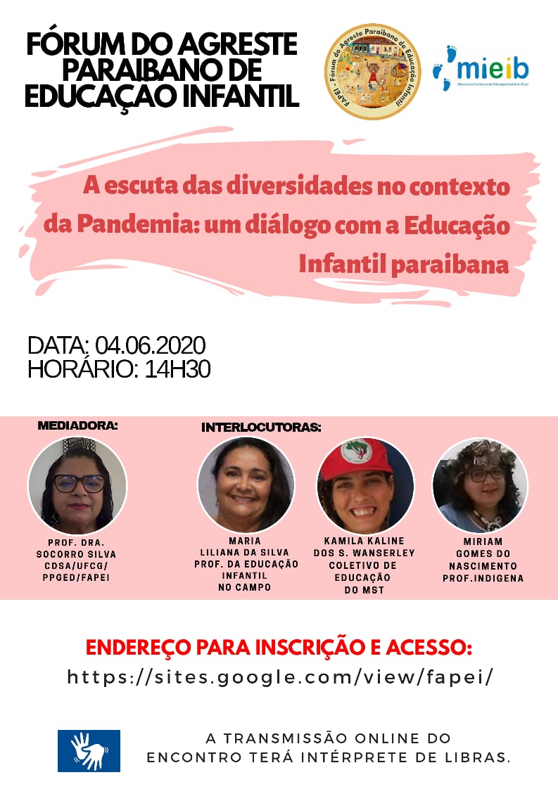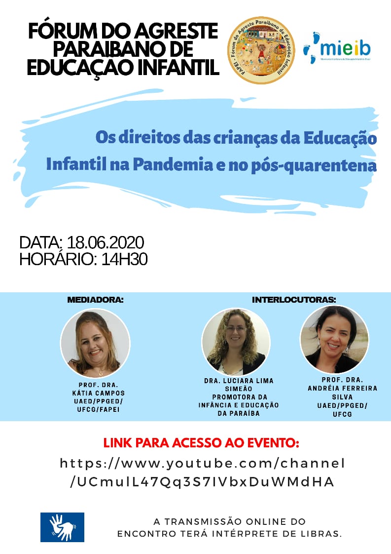 | 04/06/2020 | FÓRUM DO AGRESTE PARAIBANO DE EDUCAÇÃO INFANTIL | FAPEI | ![]() |