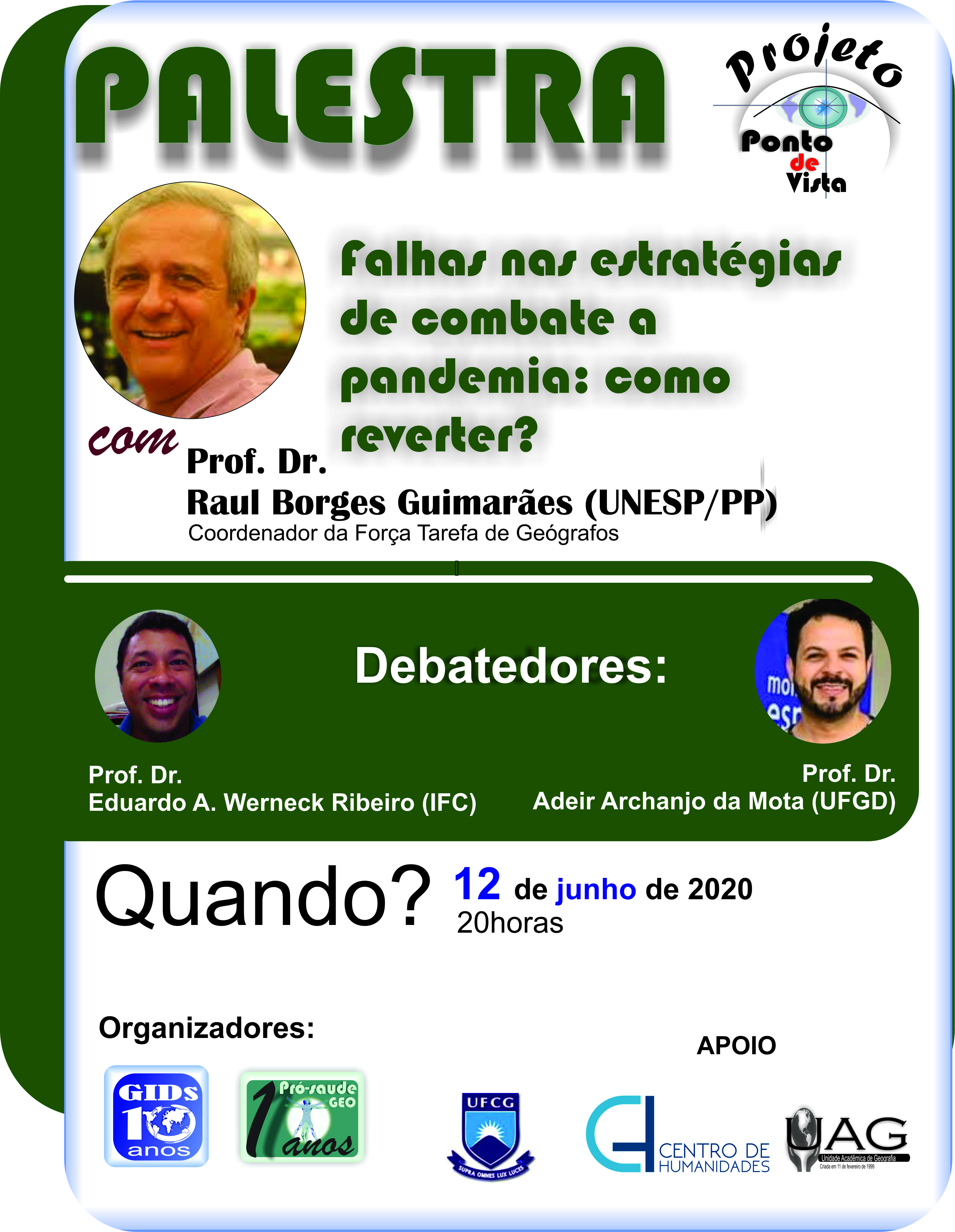 | 12/06 | PALESTRA: Falhas nas estratégias de combate a pandemia: como reverter? | GIDS & PRÓ-SAUDE GEO | |